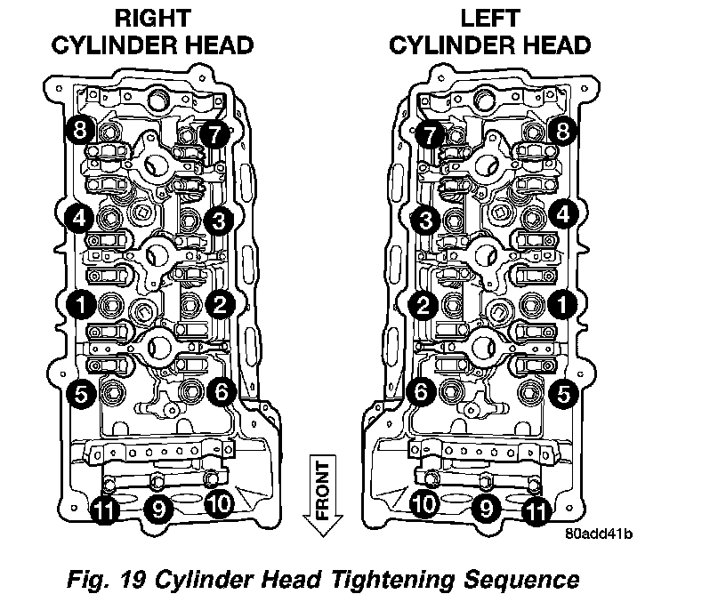 Tighten bolts in sequence shown in (Fig. 19), using the following steps and torque values: