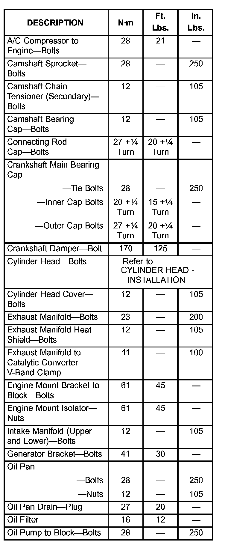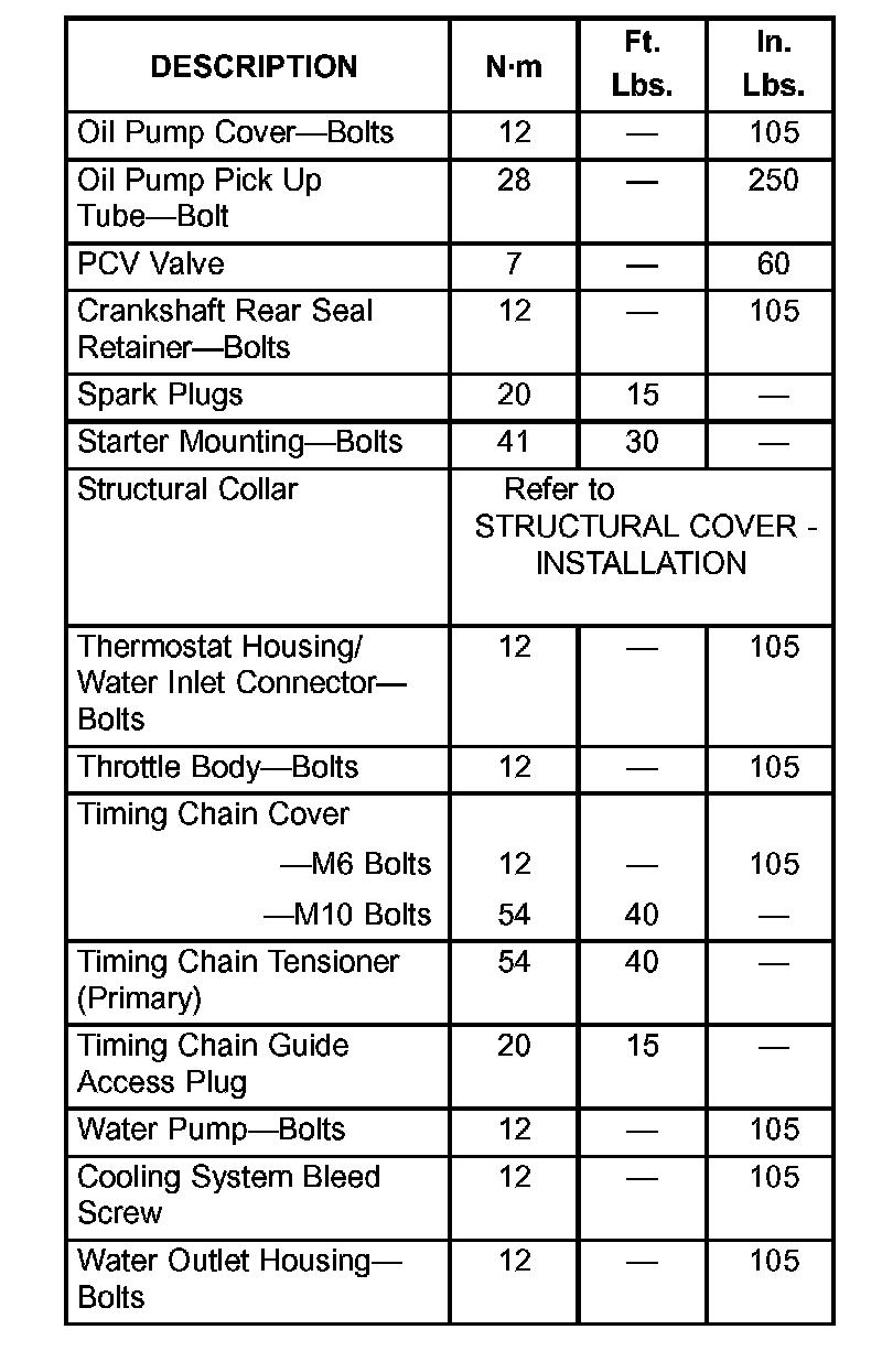 Engine Torque Specifications