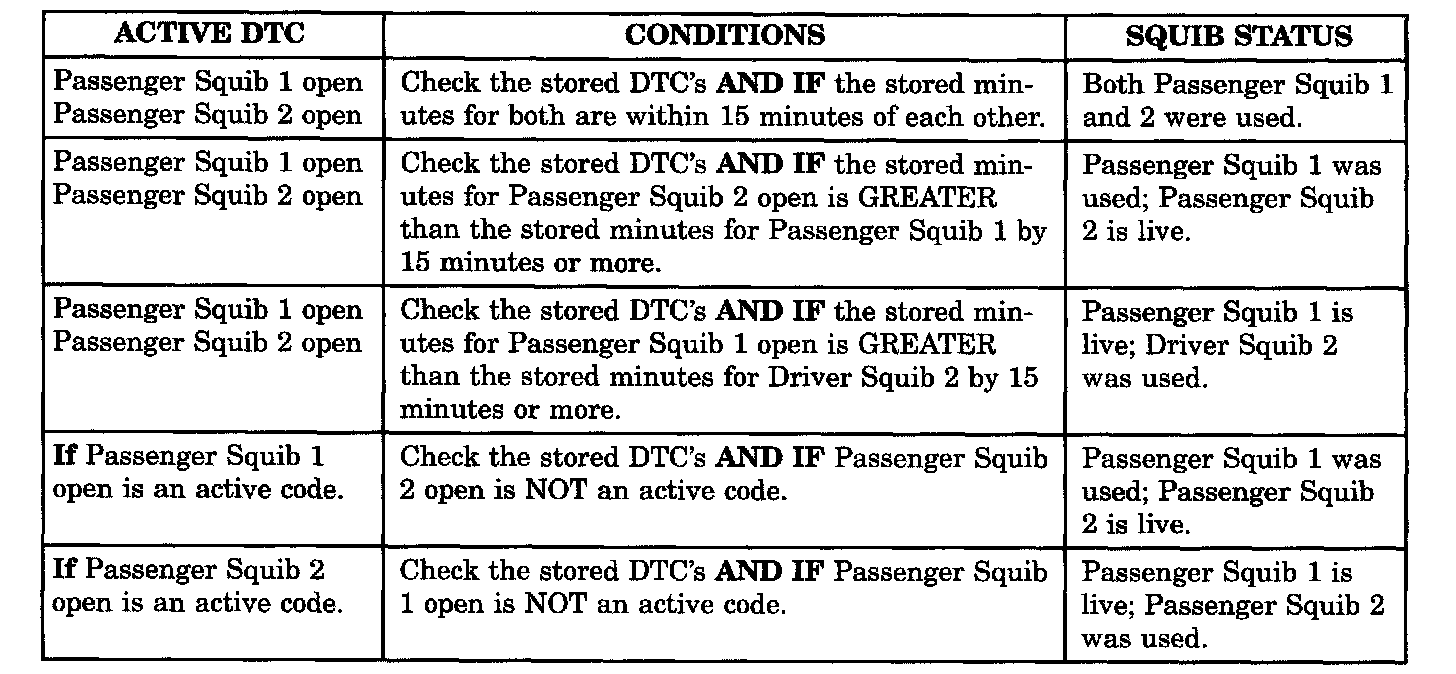 The code becomes active as soon as the malfunction is detected or key-in, whichever occurs first. An active trouble code indicates an on-going malfunction or has occurred in that ignition cycle. This means that the defect is currently there every time the airbag control module checks that circuit or component. It is impossible to erase an active code. Active codes automatically erase by themselves when the reason for the code has been corrected or NOT present in the subsequent ignition cycle. With the exception of the warning lamp trouble codes or malfunctions, when a malfunction is detected, the airbag lamp remains lit for a minimum of 12 seconds or as long as the malfunction is present.