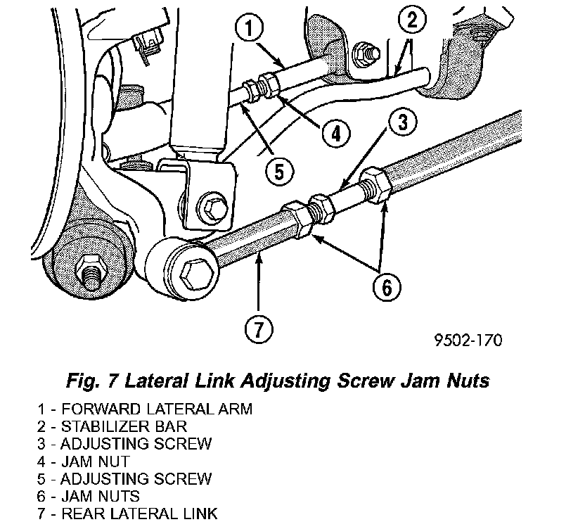 3. Adjust the forward lateral link adjusting screw (Fig. 7)to set rear toe to the preferred specification.