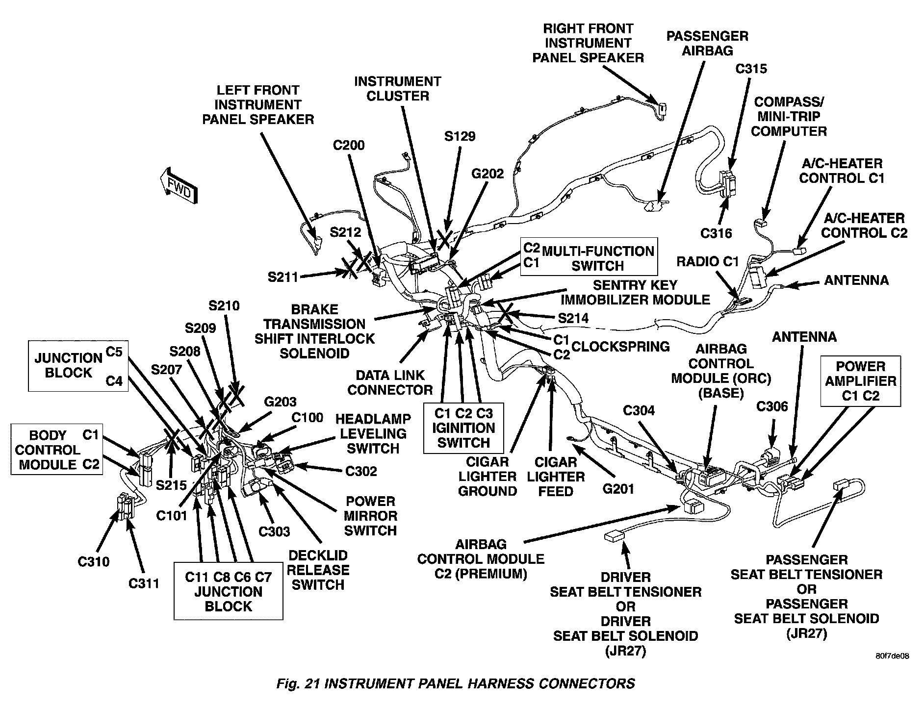 Fig. 21 Instrument Panel Harness Connectors: