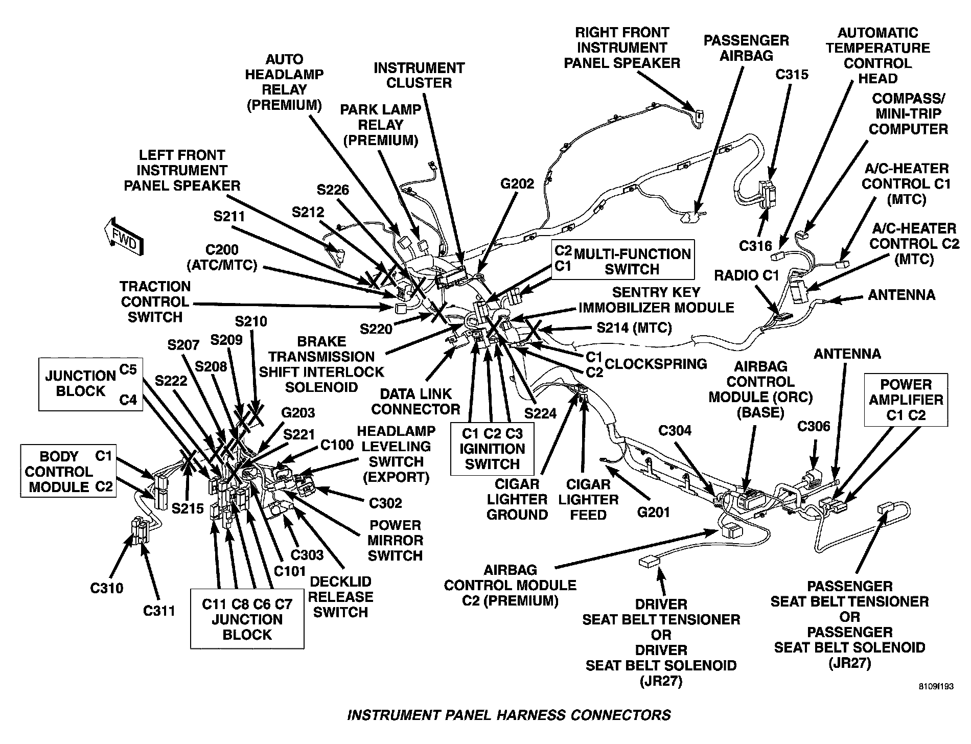 Instrument Panel Harness Connectors: