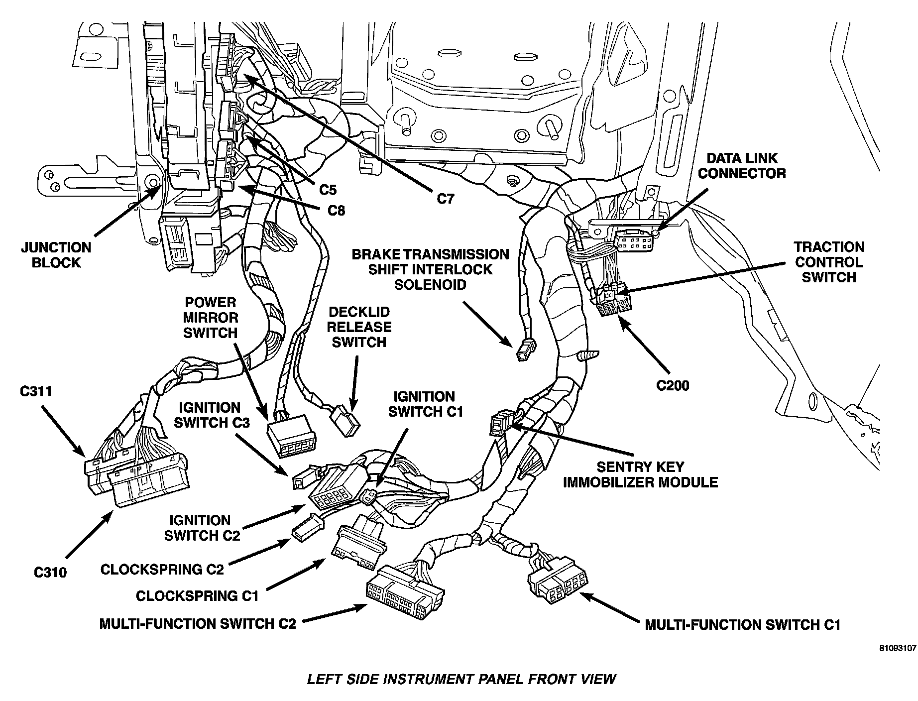 Left Side Instrument Panel Front View:
