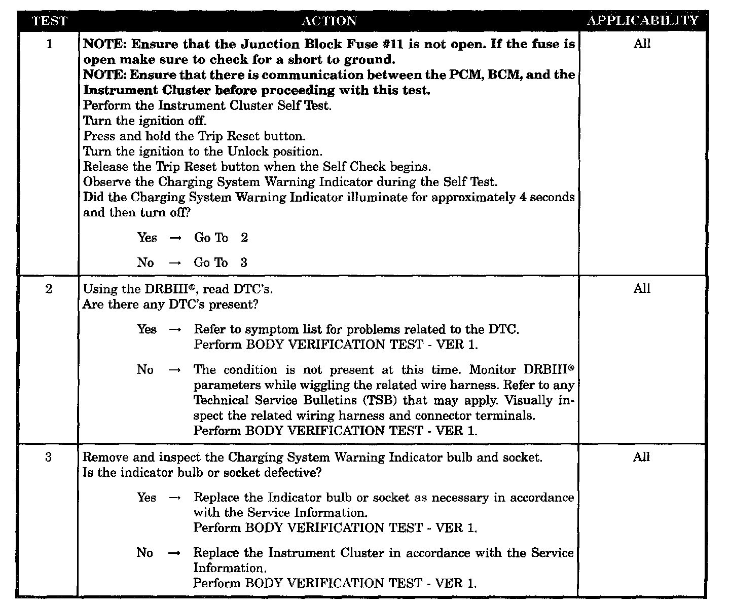 CHARGING SYSTEM WARNING INDICATOR NOT OPERATING PROPERLY