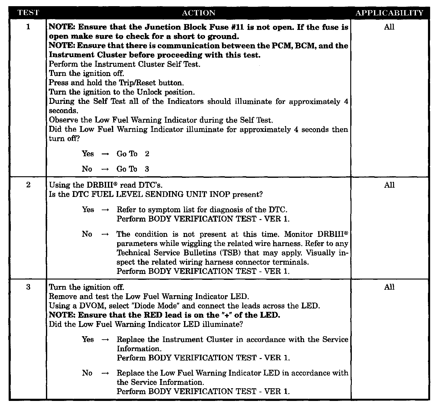 LOW FUEL WARNING INDICATOR NOT OPERATING PROPERLY