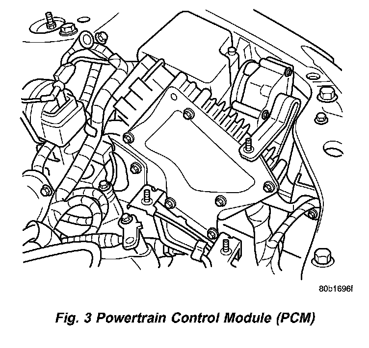 USE THE DRB SCAN TOOL TO REPROGRAM THE NEW PCM WITH THE VEHICLES ORIGINAL IDENTIFICATION NUMBER (VIN) AND THE VEHICLES ORIGINAL MILEAGE. IF THIS STEP IS NOT DONE A DIAGNOSTIC TROUBLE CODE (DTC) MAY BE SET.