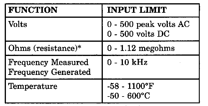 - Voltage between any terminal and ground must not exceed 500v DC or 500v peak AC.