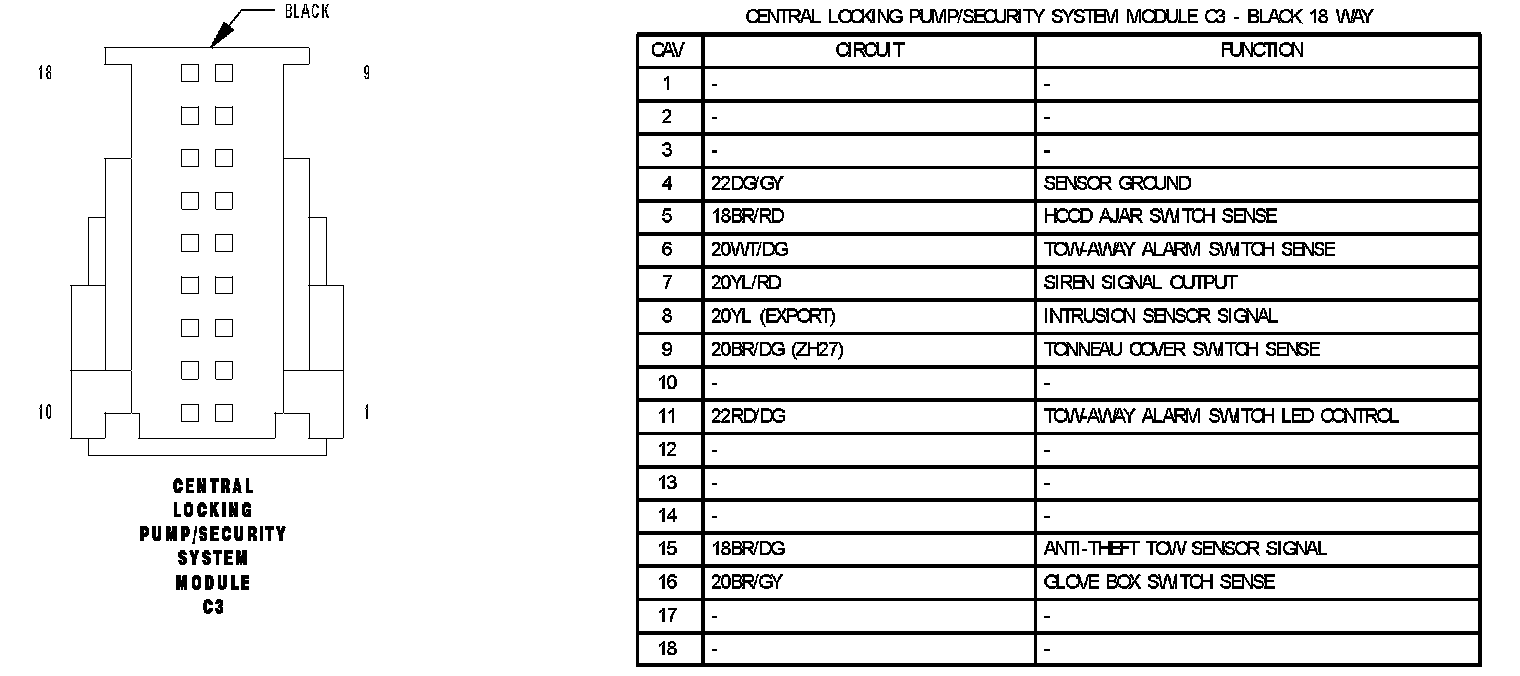 Central Locking Pump/Security System Module C1: