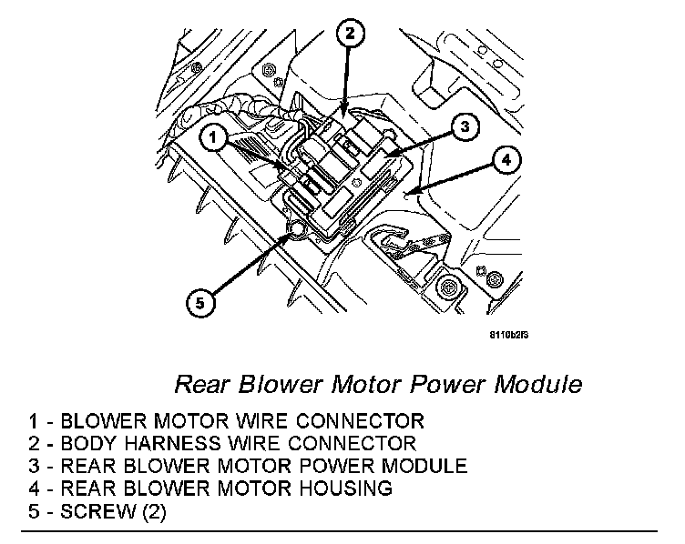 5. Remove the two screws that secure the power module to the rear blower motor housing.