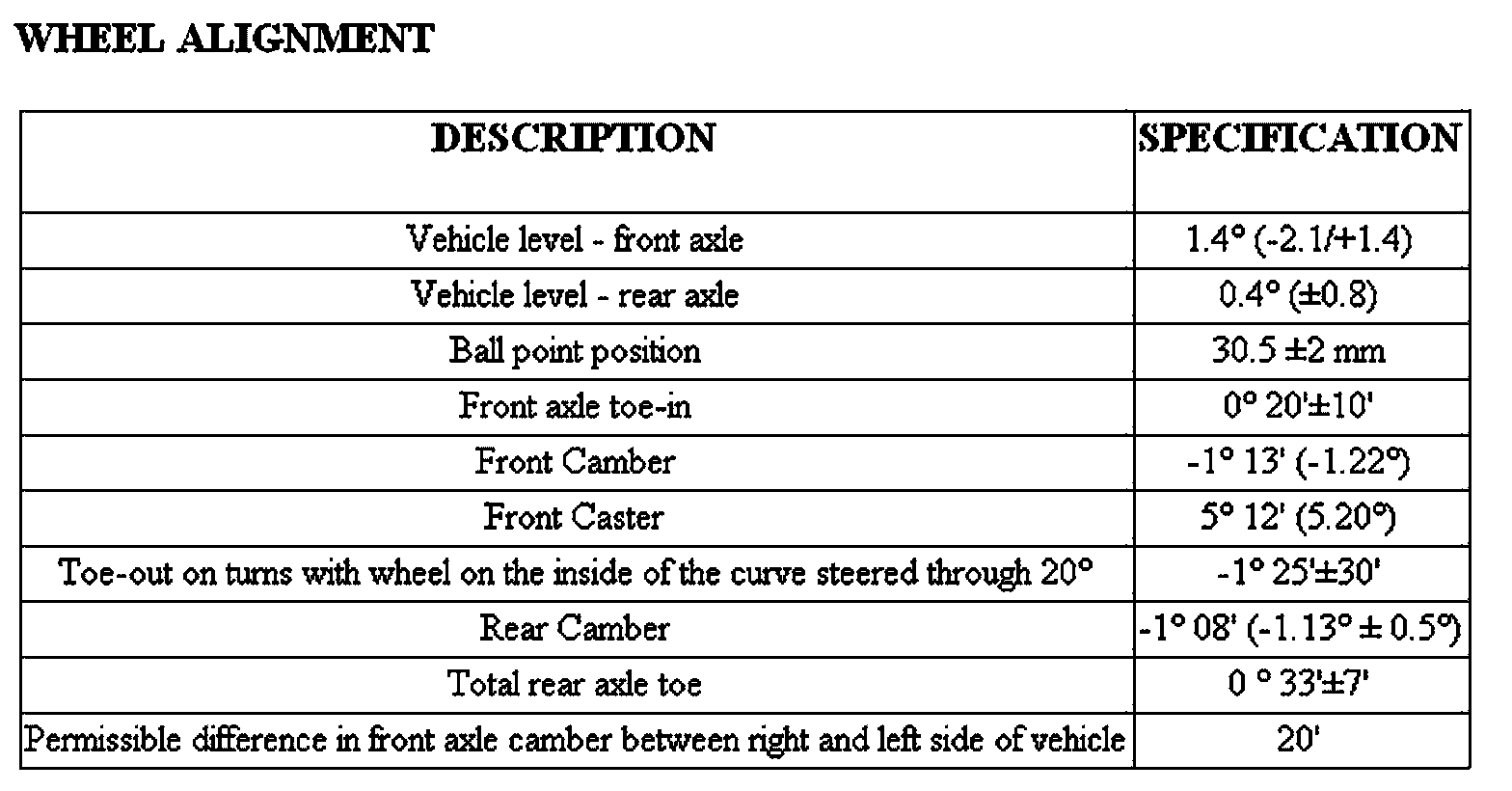 WHEEL ALIGNMENT: