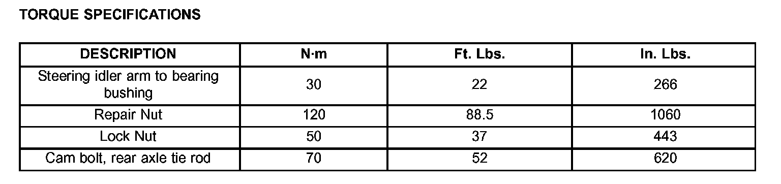 TORQUE SPECIFICATIONS: