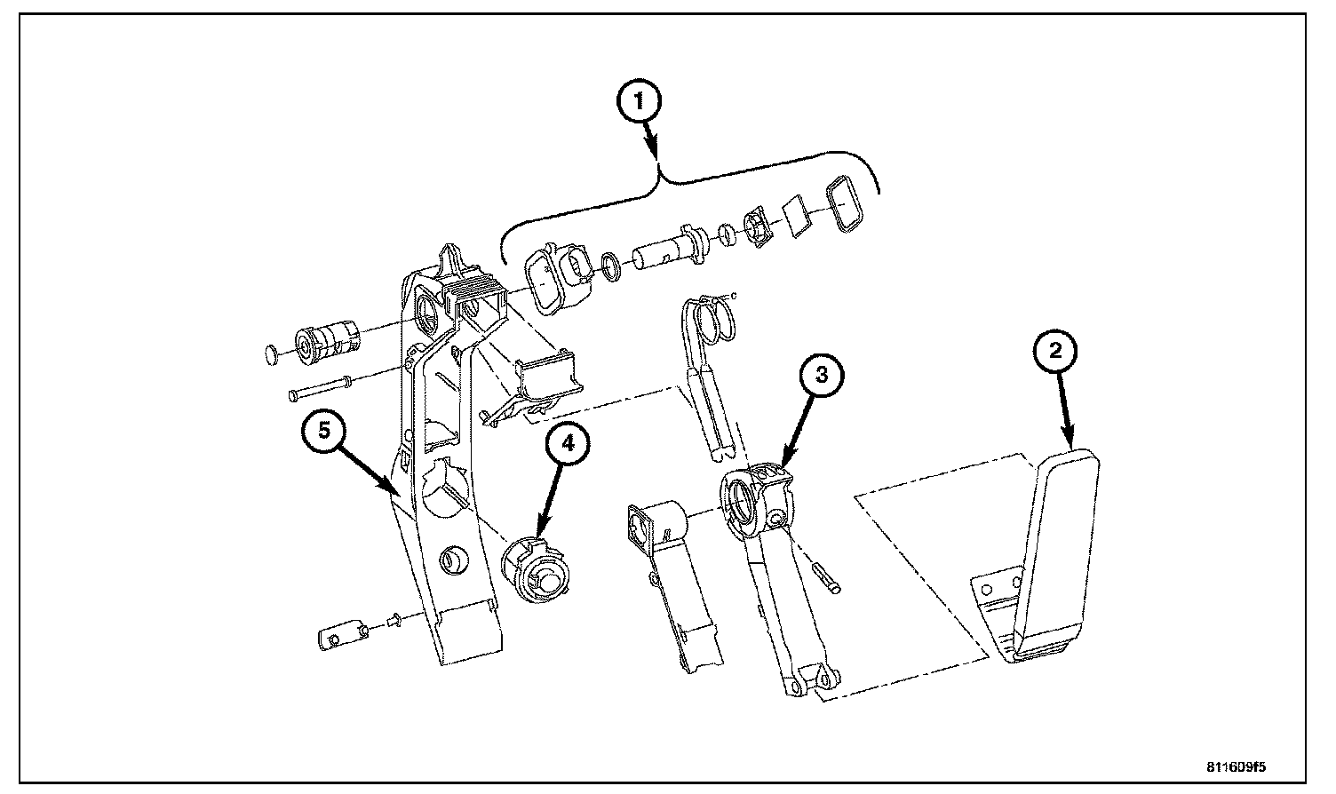 The Accelerator Pedal Position Sensor (1) is located inside the Accelerator Pedal.