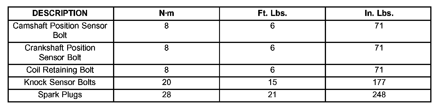 Torque Specifications: