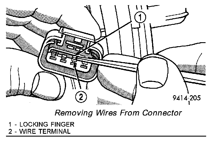 3. Using a small screwdriver lift locking finger away from terminal and push level sensor and ground terminals out of connector.