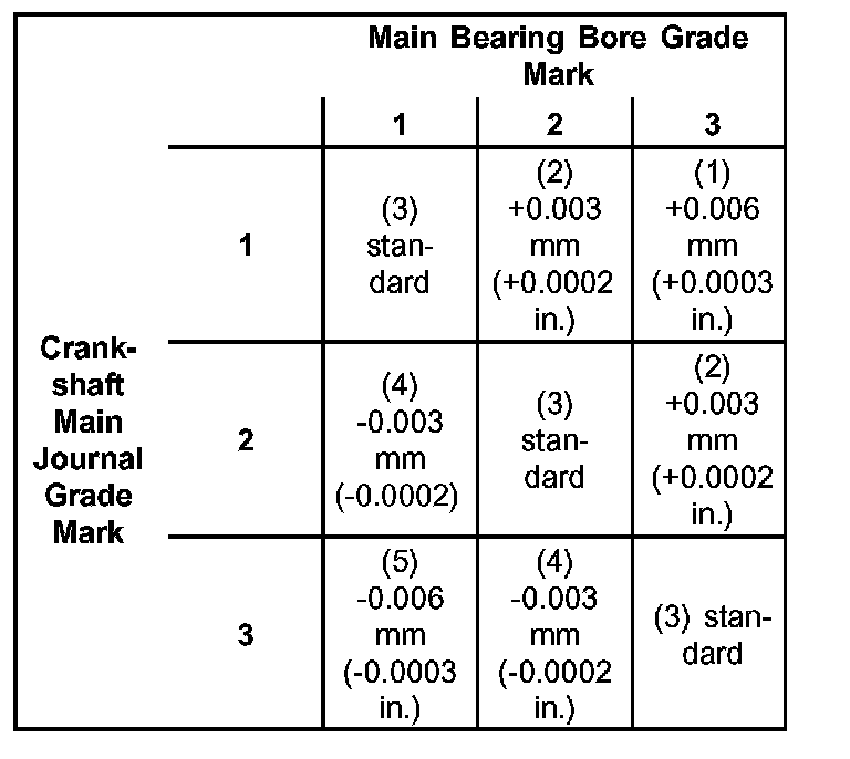 MAIN BEARING SELECTION CHART-2.7L: