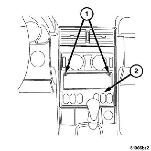 2. Install the A/C heater control module (2) by pressing in the catch lugs (1) at the sides.