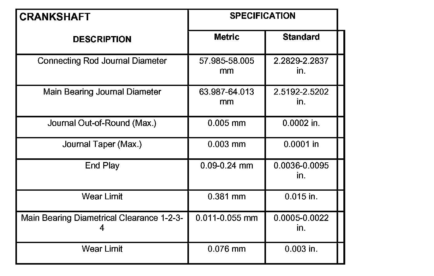 Crankshaft Main Bearing Cap-Bolts 41 Nm +1/4 turn (30 ft. lbs.) +1/4 turn