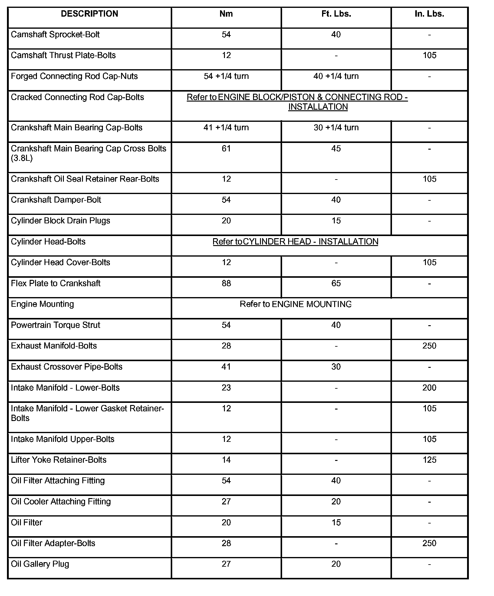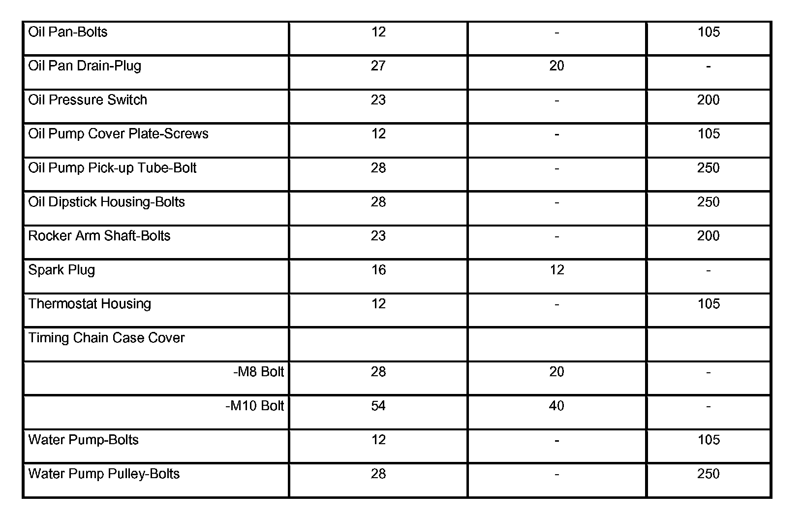 Engine Torque Specifications