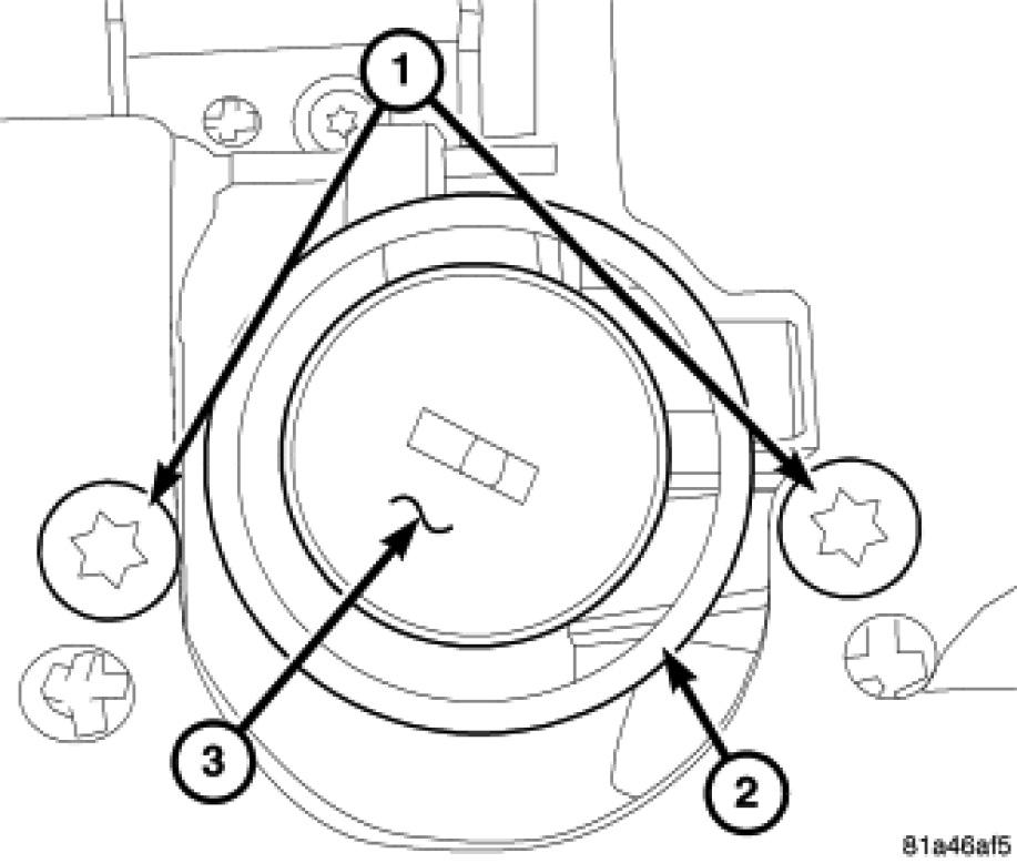 5. From underneath the ignition switch/lock assembly, loosen the lower retaining screw (2).