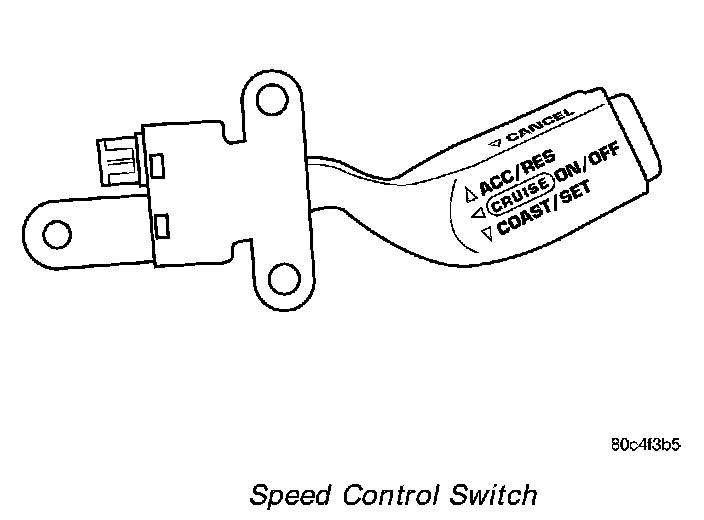 The speed control switch is mounted in the steering wheel and wired through the dock spring device under the airbag module.
