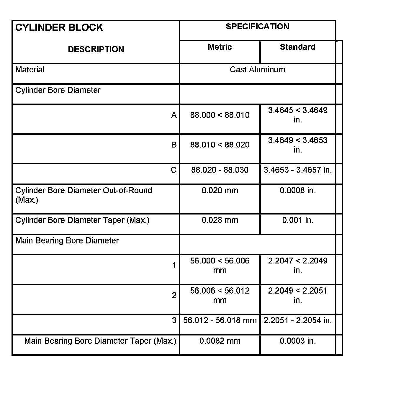 Cylinder Head Camshaft Bearing Bore Diameter