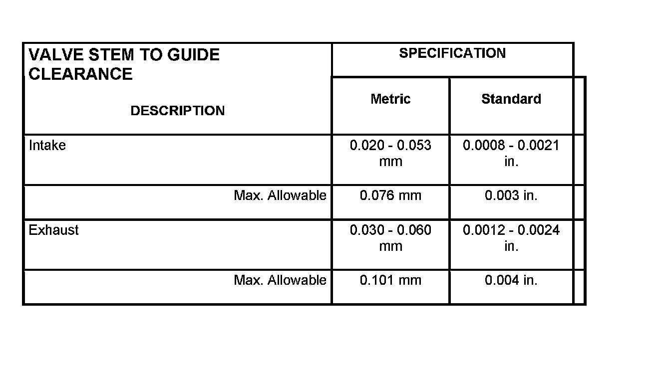 Valve Stem To Guide Clearance: