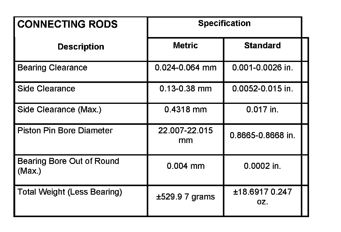 Connecting Rod Cap - Bolts 27 Nm +1/4 Turn (20 ft. lbs.) +1/4 Turn