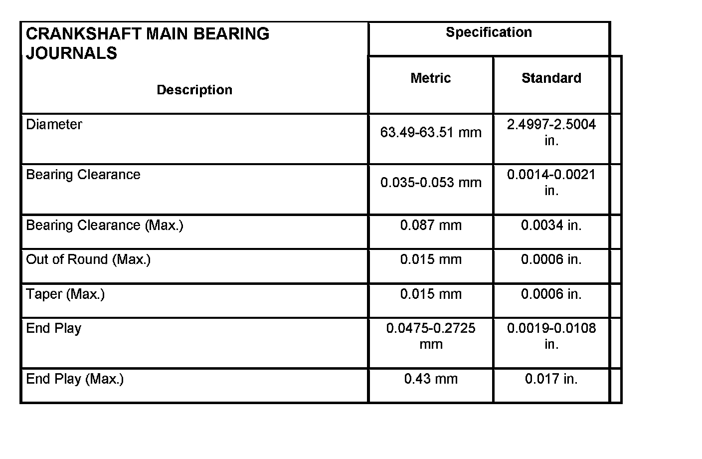 Crankshaft Main Bearing Cap - Tie Bolts 28 Nm (250 in. lbs.)