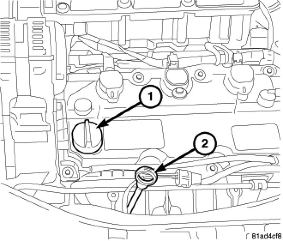 3. Open hood, remove engine oil fill cap (1).