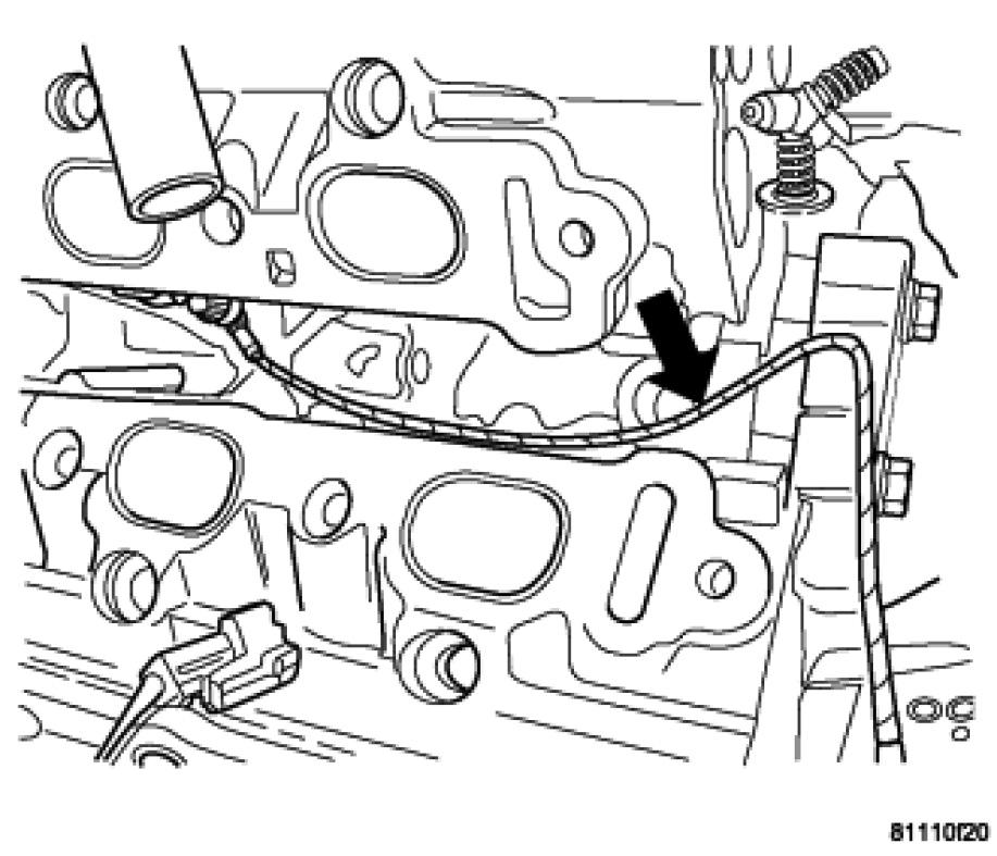 2. Route the knock sensor wire in the proper location .