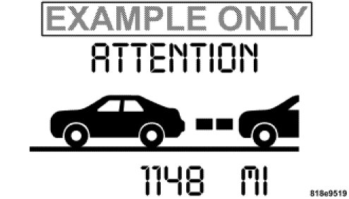 A Proximity Warning will alert the driver if ACC predicts that its maximum braking level is not sufficient to maintain the set distance. If this occurs, a visual alert ("ATTENTION") will flash in the EVIC and a chime will sound while ACC continues to apply its maximum braking capacity. When this occurs, you should immediately apply the brakes as needed to maintain a safe distance from the vehicle ahead.
