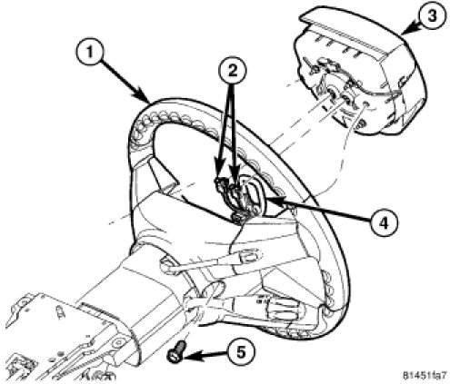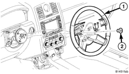 8. Align the spline on the steering wheel hub to shaft and install the steering wheel (1).