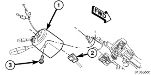 3. Install the clockspring and two T10 Torx screws (1), leave the remaining screw out far enough to stop the clockspring from rotating. Tighten T10 Torx screws to.7 Nm (6 in. lbs.).