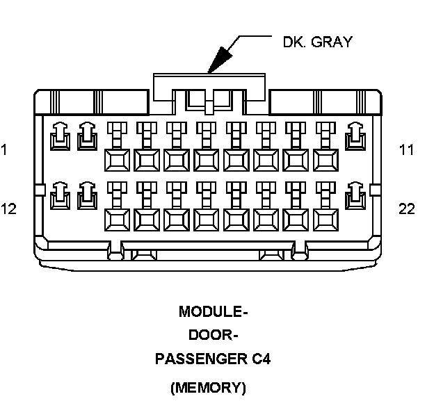 Home >> Chrysler >> 2008 >> 300 V6-2.7L >> Repair and Diagnosis >> Diagrams >> Connector Views >> Door Module >> Module-Door-Passenger