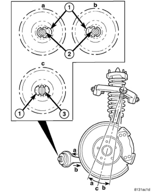 8. Rotate the cam bolt head on the opposite side (rear) of the crossmember in either direction until the preferred specification is obtained. Specifications