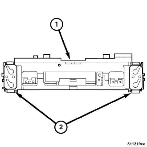 The Heated Seat Control Module (1) is integrated within the Heated Seat Switch (2) assembly. For complete Heated Seat Control Module removal procedures, see Heated Seat Switch removal in this section. Heated Seat Switch - Removal.