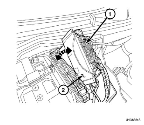 2. Slide the clips forward to remove the plastic control module box cover (1).
