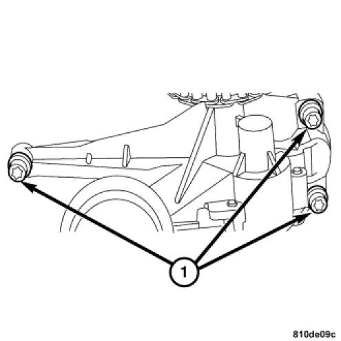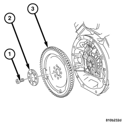 1. Install the spacer and new flywheel/flexplate bolts (1). Tighten bolts to 45 Nm (33 ft. lbs.)