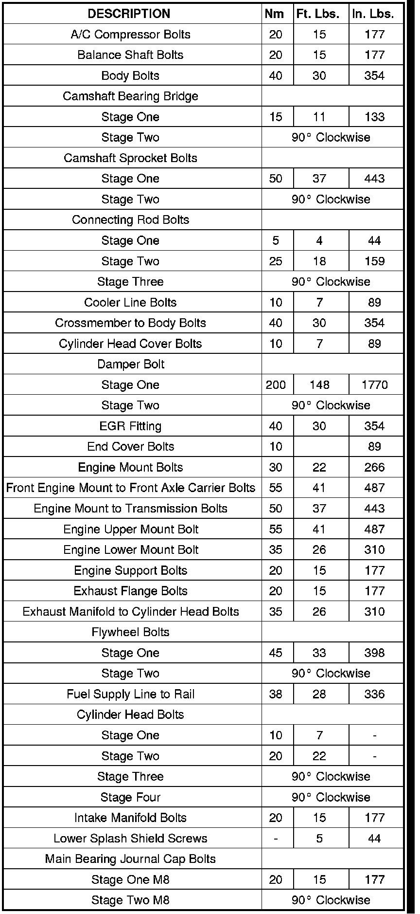 Initially tighten the flywheel bolts to 45 Nm (33 ft. lbs.). For final torque, rotate the flywheel bolts an additional 45° clockwise using a torque angle gauge.