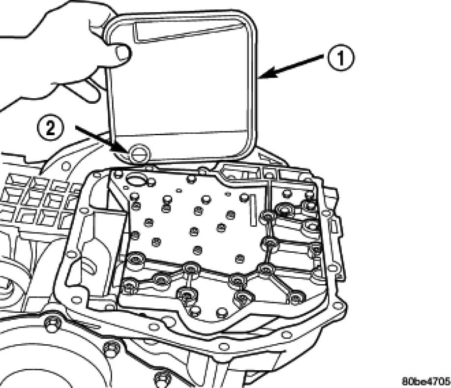 NOTE: To ease removal of the valve body (1), turn the manual valve lever fully clockwise to low or first gear.