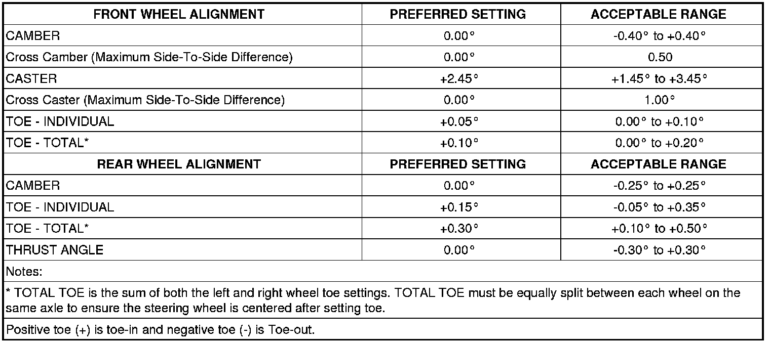 NOTE: All wheel alignments are to be set with the vehicle at curb height.