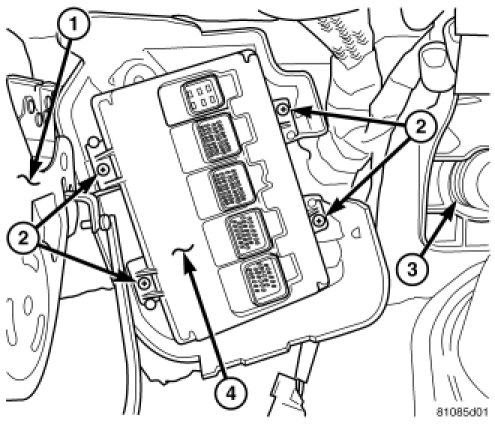 2. Install the four screws (2) holding the BCM (4) to the bulkhead.