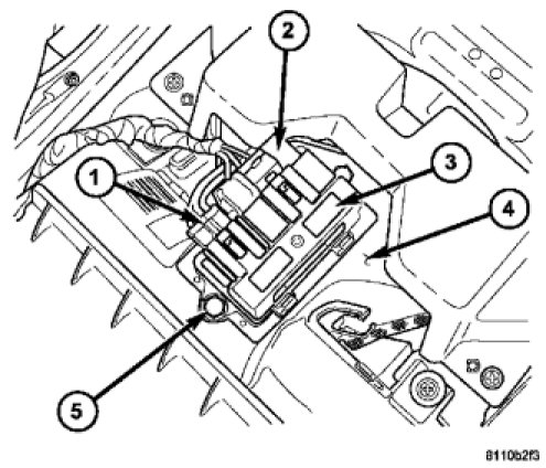 2. Install the two screws (5) that secure the power module to the blower motor housing. Tighten the screws to 2 Nm (17 in. lbs.).