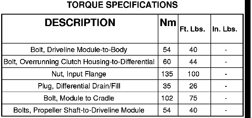 SPECIFICATIONS - REAR DRIVELINE MODULE
