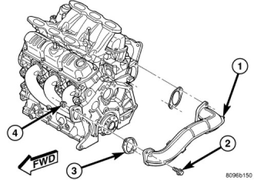 2. Using a new gasket, attach crossover pipe to exhaust manifold and tighten bolts (2) to 41 Nm (30 ft. lbs.).