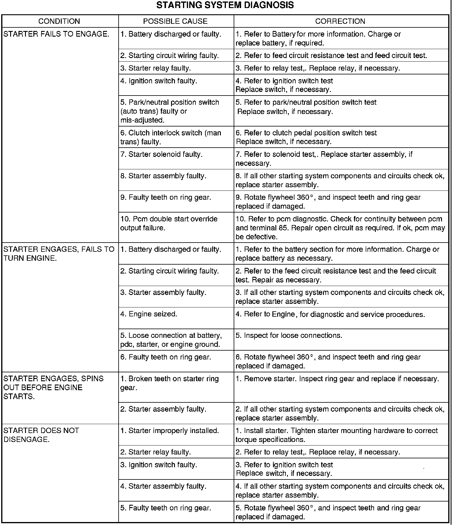 Before removing any unit from the starting system for repair or diagnosis, perform the following inspections: