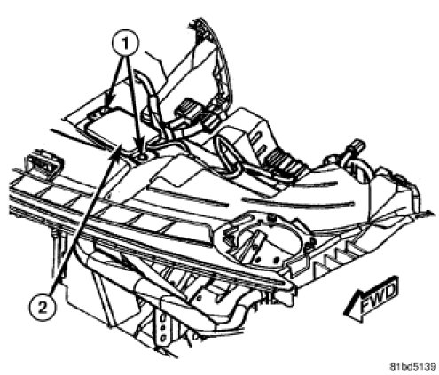 1. Install the remote start antenna (2) and screws (1) to instrument panel assembly. Tighten to 2.5 Nm (22 in. lbs.).
