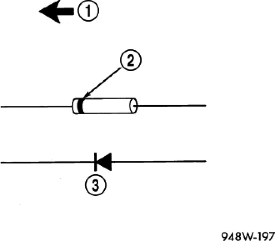 Remove the diode from the harness, pay attention to the current flow direction (1) (2) (3).