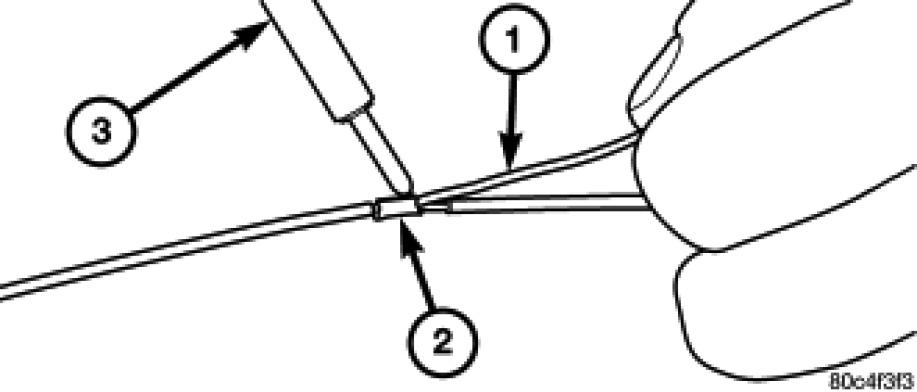 4. Using crimping tool (1), Mopar p/n 05019912AA, crimp the splice clip and wires together.