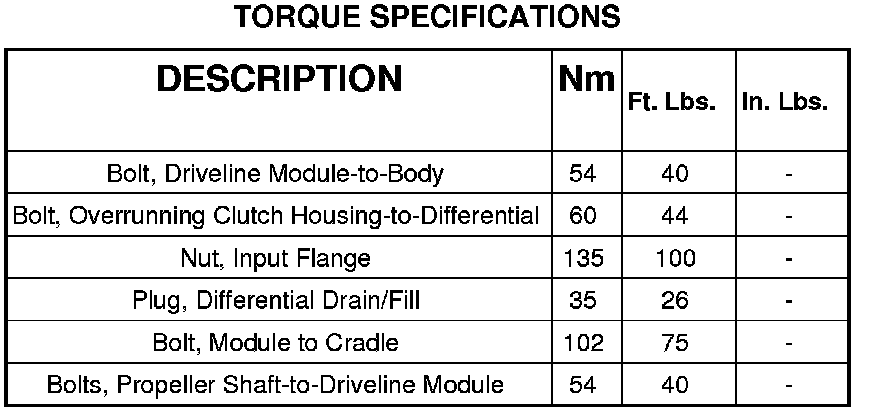 SPECIFICATIONS - REAR DRIVELINE MODULE